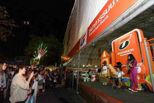 Thanachart Bank participated in the sale of Red Cross lottery tickets as well as the Red Cross Fair which was held annually. The participation in the annual fair could be traced back to the year 1976 when Bangkok Metropolitan Bank was the only commercial bank which was invited to join the Red Cross Fair, at which the bank used the name of “Bangkok Metropolitan Bank’s Red Cross Booth”. Later in 2002 when Bangkok Metropolitan Bank merged with Siam City Bank, Siam City Bank participated in the fair, using the name of “Siam City Bank’s Red Cross Booth”. In 2011 when Siam City Bank merged with TBANK, the name at the fair was changed to “TBANK’s Red Cross Booth”. Today, it is still the only commercial bank with a booth at the Annual Red Cross Fair in Suan Amporn Park.