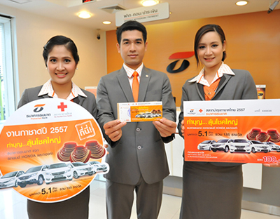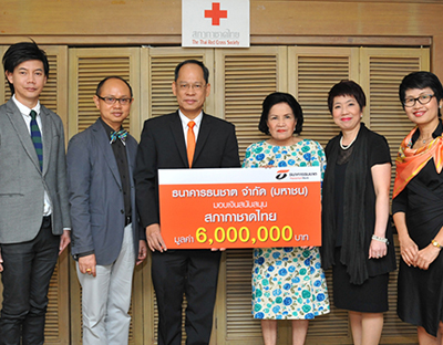 Although the organizers of the annual Red Cross Fair, Thai Red Cross Society, announced cancellation of the fair in 2014 due to political unrest, TBANK continued to issue and sell Red Cross lottery tickets. The net proceeds worth 6,000,000 baht from the sale were humbly presented to Her Royal Highness Princess Maha Chakri Sirindhorn, Executive Vice President of the Council of the Thai Red Cross Society, for charity at the discretion of Her Royal Highness as partial financial support in a continuous manner to the Council.