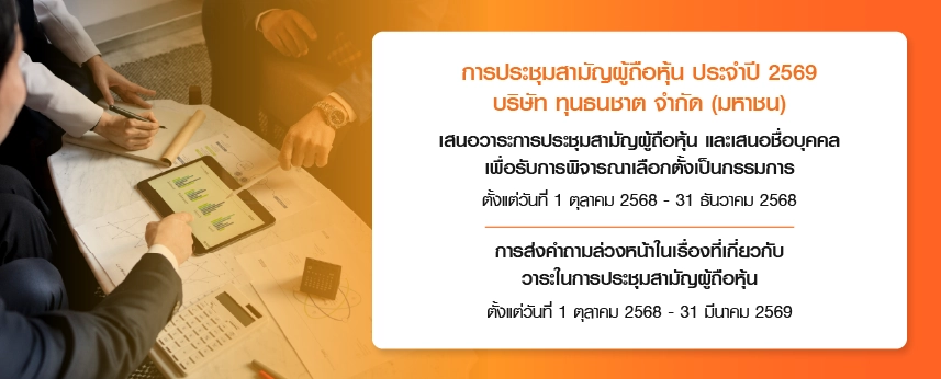 อ่านเพิ่มเติมธนาคารทหารไทยธนชาต จำกัด (มหาชน) (“ทีเอ็มบีธนชาต”) เกิดจากการรวมกิจการระหว่าง ธนาคารทหารไทย จำกัด (มหาชน) (“ทีเอ็มบี”) และธนาคารธนชาต จำกัด (มหาชน) (“ธนชาต”) เป็นการผนึกกำลังความเชี่ยวชาญของทั้งทีเอ็มบีและธนชาตที่แตกต่าง มาประสานจุดแข็งซึ่งกันและกัน เพื่อสร้างชีวิตทางการเงินที่ดีขึ้นให้กับคนไทยทั้งประเทศ โดยบริษัทฯ เป็น 1 ในผู้ถือหุ้นใหญ่ของ ทีเอ็มบีธนชาต ในสัดส่วนมากกว่าร้อยละ 20 และมีส่วนร่วมในการดำเนินธุรกิจของ ทีเอ็มบีธนชาต