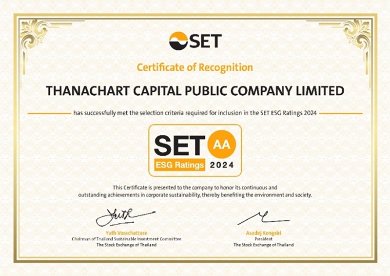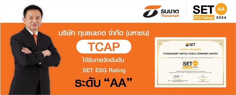 บริษัท ทุนธนชาต จำกัด (มหาชน) หรือ TCAP ได้รับการประเมินหุ้นยั่งยืน “SET ESG Ratings” ในระดับ “AA” ประจำปี 2567 โดยอันดับ ESG Rating เพิ่มขึ้นจากปีก่อนที่ระดับ A และอยู่ในรายชื่อหุ้นยั่งยืนต่อเนื่องเป็นปีที่ 2 ซึ่งเป็น 1 ใน 228 บริษัทที่ได้รับการประกาศผลประเมินหุ้นยั่งยืน SET ESG Ratings จากตลาดหลักทรัพย์แห่งประเทศไทย แสดงให้เห็นถึงพัฒนาการที่สำคัญในการดำเนินงานด้านความยั่งยืน รวมทั้งให้ความสำคัญกับการมีส่วนร่วมของผู้มีส่วนได้เสียทุกกลุ่มโดยคำนึงถึงสังคม สิ่งแวดล้อม และมีการบริหารงานตามหลักบรรษัทภิบาล (Environmental, Social and Governance หรือ ESG) ของ TCAP ที่ผ่านมา โดย TCAP ยังคงมุ่งมั่นในการพัฒนาเพื่อยกระดับการดำเนินงานด้านความยั่งยืน เพิ่มขีดความสามารถใน การแข่งขัน สร้างโอกาสและผลตอบแทนที่ดีให้แก่ผู้ลงทุนในระยะยาวอย่างต่อเนื่อง