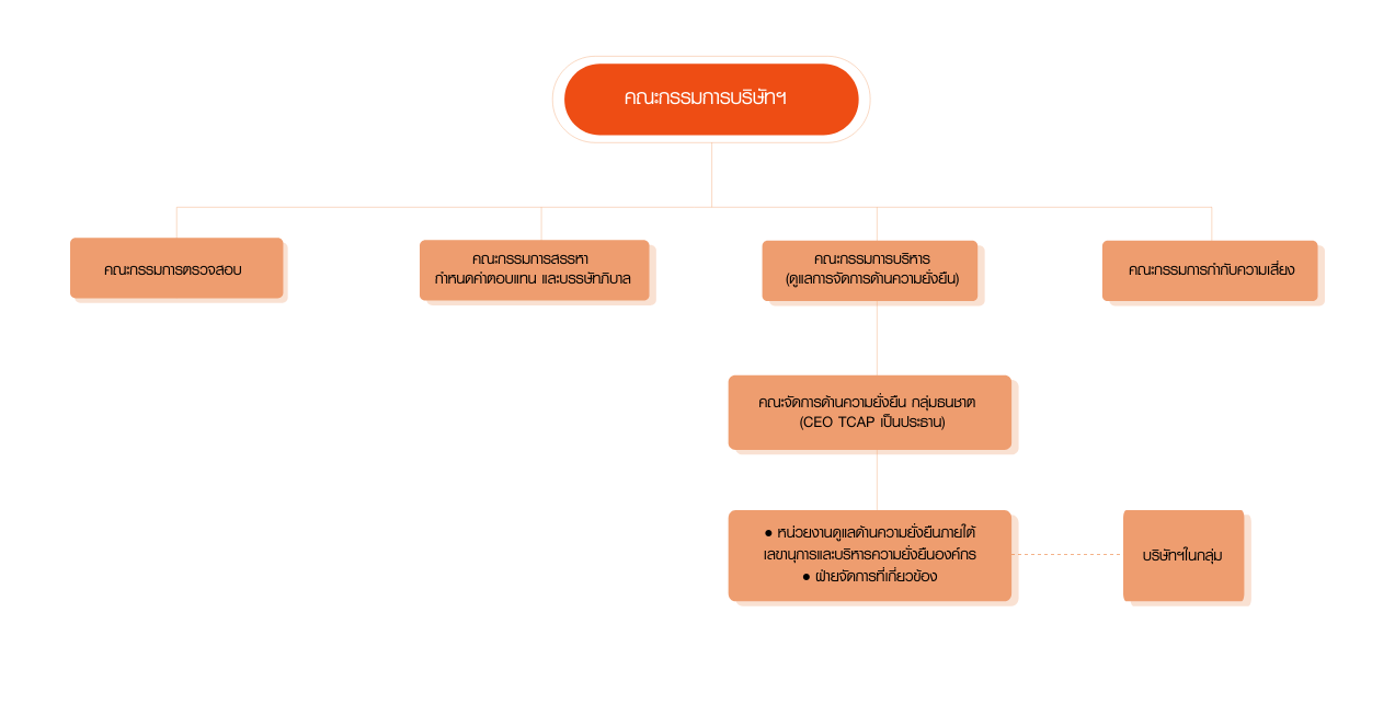 - กำกับดูแล และพิจารณาเสนอแนวทาง กรอบการบริหารความเสี่ยงด้าน ESG และการบรรเทาภาวะโลกร้อนและการจัดการความเสี่ยงที่เกิดจากการเปลี่ยนแปลงสภาพภูมิอากาศ (Climate Change) ต่อคณะกรรมการบริหาร และคณะกรรมการบริษัทฯ เพื่อพิจารณา